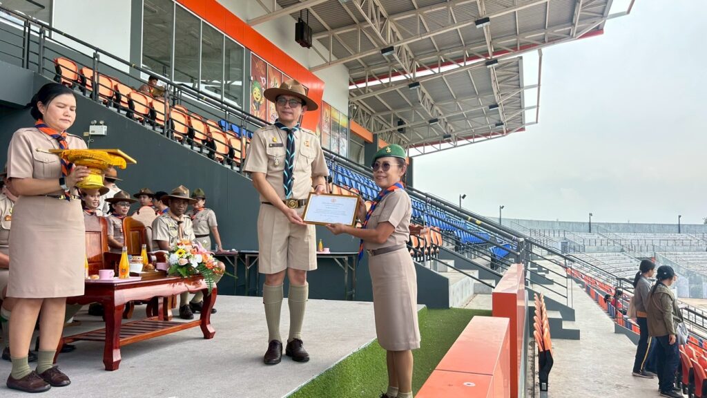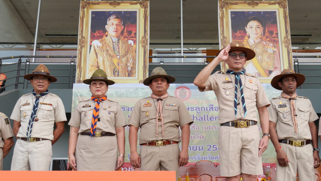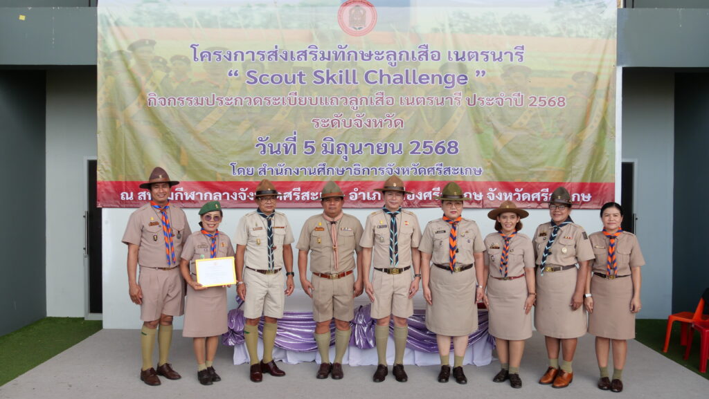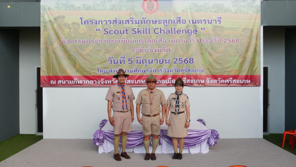 วันที่ 5 มิถุนายน 2568 นายลิขิต เพ็งประสิทธิพงศ์ ผู้อำนวยการสำนักงานเขตพื้นที่การศึกษาประถมศึกษาศรีสะเกษ เขต 4 พร้อมด้วย นางรุ่งนภา งามสง่า นักวิชาการศึกษาชำนาญการพิเศษ ผู้บริหารสถานศึกษา ผู้บังคับบัญชาลูกเสือ และลูกเสือ เนตรนารี จากโรงเรียนบ้านท่าสว่าง และโรงเรียนบ้านตูม (นพค.15 กรป.กลางอุปถัมภ์) เข้าร่วมพิธีประกวดทักษะลูกเสือ เนตรนารี “Scout Skill Challenge” ระดับจังหวัด ประจำปี 2568 โดยมี นายสมาน เวียงปฏิ ศึกษาธิการจังหวัดศรีสะเกษ เป็นประธานในพิธี และนางสาวศิราณี ศักรินพานิชกุล รองศึกษาธิการจังหวัดศรีสะเกษ กล่าวรายงานการจัดกิจกรรมประกวดทักษะลูกเสือ เนตรนารี โดยมีสถานศึกษา จำนวน 11 แห่ง ในพื้นที่จังหวัดศรีสะเกษส่งกองลูกเสือ เนตรนารี เข้าร่วมการประกวดจำนวนทั้งสิ้น 18 กอง รวม 6 ประเภท ดังนี้ ประเภทลูกเสือสามัญ เนตรนารีสามัญ ลูกเสือสามัญรุ่นใหญ่ เนตรนารีสามัญรุ่นใหญ่ ลูกเสือวิสามัญ และเนตรนารีวิสามัญ ณ สนามกีฬากลางจังหวัดศรีสะเกษ (เกาะกลางน้ำ) อำเภอเมืองศรีสะเกษ จังหวัดศรีสะเกษ