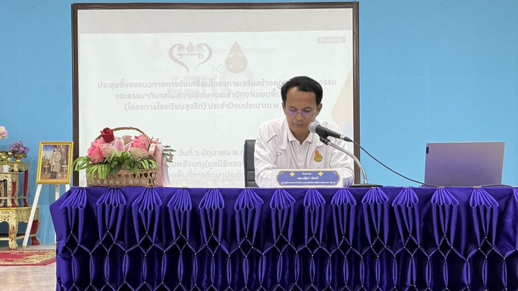 วันที่ 6 มิถุนายน 2568 นายลิขิต เพ็งประสิทธิพงศ์ ผู้อำนวยการสำนักงานเขตพื้นที่การศึกษาประถมศึกษาศรีสะเกษ เขต 4 มอบหมายให้ นายปรีชา จันทวี รองผู้อำนวยการสำนักงานเขตพื้นที่การศึกษาประถมศึกษาศรีสะเกษ เขต 4 เป็นประธานเปิดกิจกรรมการประชุมชี้แจงและวิเคราะห์ข้อมูลตามรายการประเมินคุณธรรมและความโปร่งใสในการดำเนินงานของหน่วยงานภาครัฐ (ITA Online) เครื่องมือ EIT ซึ่งกิจกรรมในวันนี้เป็นการประเมินผู้มีส่วนได้ส่วนเสียภายนอก ตามแบบวัด EIT1 และ EIT2 โดยมี นายสาน แก้วกัณหา ผอ.กลุ่มนิเทศ ติดตามและประเมินผลการจัดการศึกษา กล่าวรายงานการจัดกิจกรรม พร้อมด้วยคณะศึกษานิเทศก์และผู้เกี่ยวข้องเข้าร่วมประชุม ณ หอประชุมพลังบุญ (มูลนิธิหลวงปู่สรวงวัดไพรพัฒนา) สพป.ศรีสะเกษ เขต 4
