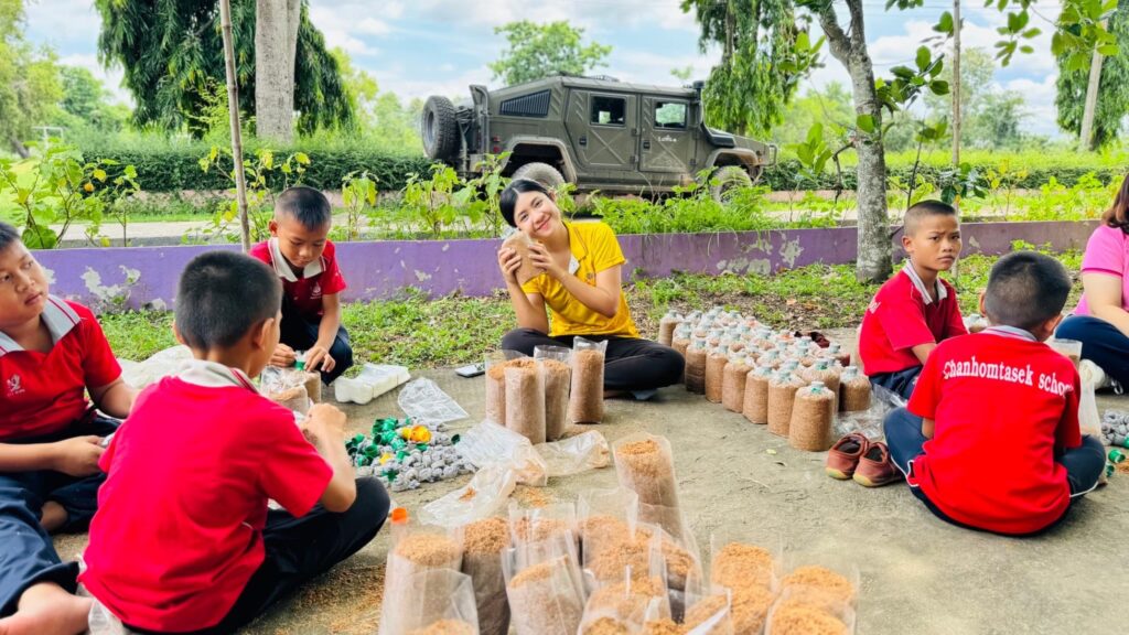 วันที่ 25 มิถุนายน 2568 ที่โรงเรียนบ้านจันทน์หอมตาเสก นายลิขิต เพ็งประสิทธิพงศ์ ผู้อำนวยการสำนักงานเขตพื้นที่การศึกษาประถมศึกษาศรีสะเกษ เขต 4 มอบหมายให้ นางพิมพ์นิภา ศรีสุแล และนางชญาดา เจริญรักษ์ ศึกษานิเทศก์ประจำกลุ่มโรงเรียนมออีแดง พร้อมด้วย นายกัลญศักดิ์ รัตนาฆพิมพ์ นักประชาสัมพันธ์ ลงพื้นที่ตรวจเยี่ยมกิจกรรมเสริมสร้างทักษะอาชีพที่จำเป็นแห่งอนาคต (Future Skill) และการมีรายได้ระหว่างเรียน (Learn to Earn) ณ ศูนย์เรียนรู้โครงการอันเนื่องมาจากพระราชดำริต้นแบบ ประจำปีงบประมาณ พ.ศ. 2568 ของโรงเรียนบ้านจันทน์หอมตาเสก โดยมีเป้าหมายที่สำคัญ คือ การทำให้เด็กนักเรียนรู้จักความพอเพียง ปลูกฝัง อบรม บ่มเพาะให้เด็ก มีความสมดุลทางเศรษฐกิจ สังคม สิ่งแวดล้อมและวัฒนธรรมโดยสอดแทรกแนวคิดปรัชญาของเศรษฐกิจพอเพียงให้เข้าเป็นส่วนหนึ่งของหลักสูตรสาระการเรียนรู้ต่างๆ เพื่อให้เด็กรู้จักใช้ชีวิตได้อย่างสมดุล เห็นคุณค่าทรัพยากรอยู่ร่วมกับผู้อื่นด้วยความเอื้อเฟื้อเผื่อแผ่ สำนึกรักษ์สิ่งแวดล้อมและเห็นคุณค่าของวัฒนธรรม ตลอดจนการเปลี่ยนแปลงของสิ่งแวดล้อมและวัฒนธรรมของโลก โดยมีแหล่งเรียนรู้ที่เอื้อต่อการเรียนรู้ตามหลักปรัชญาของเศรษฐกิจพอเพียง ได้แก่