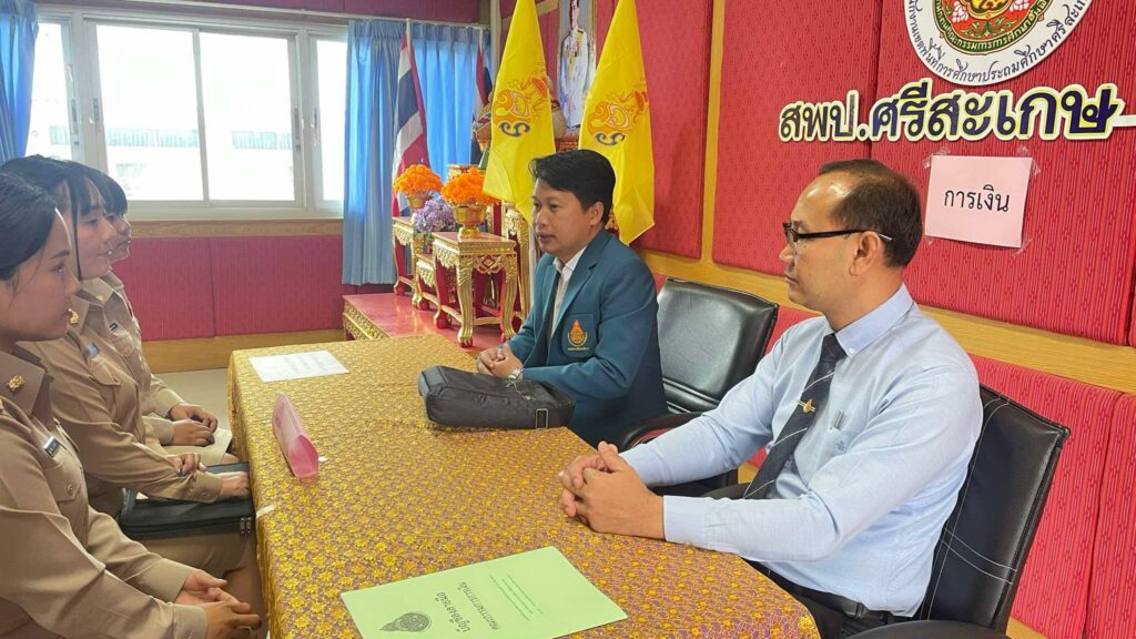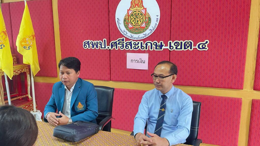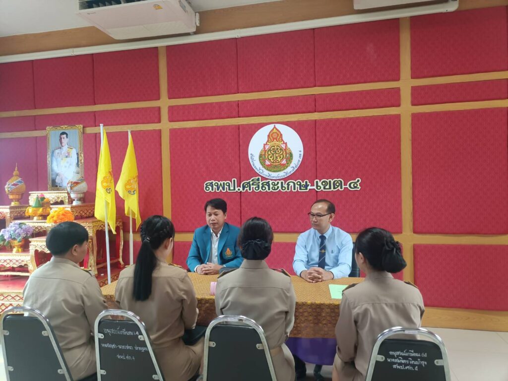 วันที่ 1 กรกฎาคม 2568 ณ ห้องประชุมมออีแดง สพป.ศรีสะเกษ เขต 4 เวลา 09.00 น. นายลิขิต เพ็งประสิทธิพงศ์ ผู้อำนวยการสำนักงานเขตพื้นที่การศึกษาประถมศึกษาศรีสะเกษ เขต 4 มอบหมายให้ นายยุทธนา พรทิพย์ รองผู้อำนวยการสำนักงานเขตพื้นที่การศึกษาประถมศึกษาศรีสะเกษ เขต 4 รับรายงานตัวพนักงานราชการ จำนวน 4 อัตรา ตำแหน่ง ครูพี่เลี้ยง 1 อัตรา ครูผู้สอน 3 อัตรา พร้อมด้วยตำแหน่ง ครูผู้ช่วย 1 อัตรา ประกอบด้วย