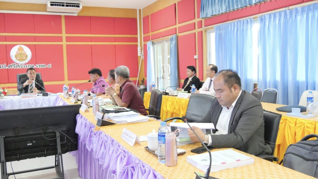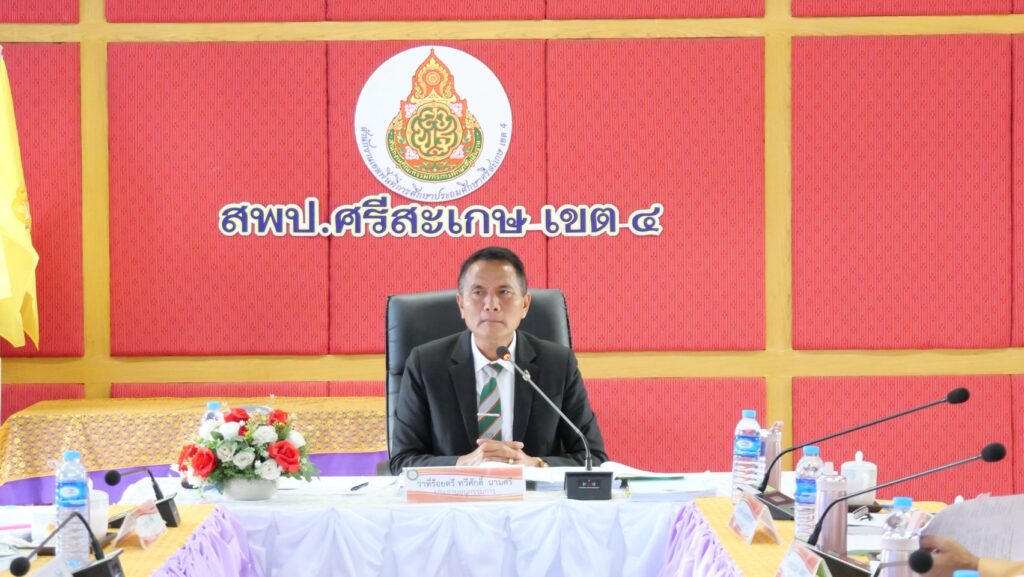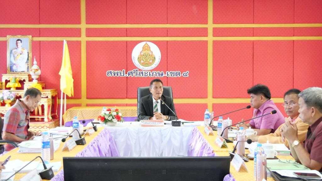 วันที่ 8 กรกฎาคม 2568 ณ ห้องประชุมมออีแดง สำนักงานเขตพื้นที่การศึกษาประถมศึกษาศรีสะเกษ เขต 4 ว่าที่ร้อยตรี ทวีศักดิ์ นามศรี ประธาน อ.ก.ค.ศ.เขตพื้นที่การศึกษาประถมศึกษาศรีสะเกษ เขต 4 พร้อมด้วยคณะอนุกรรมการ อ.ก.ค.ศ.เขตพื้นที่การศึกษาประถมศึกษาศรีสะเกษ เขต 4 เข้าร่วมประชุมคณะอนุกรรมการ อ.ก.ค.ศ.เขตพื้นที่การศึกษาประถมศึกษาศรีสะเกษ เขต 4 ครั้งที่ 8/2568 เพื่อพิจารณาอนุมัติและเห็นชอบ ด้านการบริหารงานบุคคลด้านต่าง ๆ ได่แก่ ขอความเห็นชอบอัตรากำลังข้าราชการครูและบุคลากรทางการศึกษาในสถานศึกษา ขอใช้ตำแหน่งว่าง เพื่อประกอบการย้ายข้าราชการครูและบุคลากรทางการศึกษา ตำแหน่งครู สังกัดกระทรวงศึกษาธิการ ผ่านระบบ TRS(Teacher Rotation System) ขออนุมัติดำเนินการย้ายข้าราชการครูและบุคลากรทางการศึกษา ตำแหน่งครู สังกัดกระทรวงศึกษาธิการ ผ่านระบบ TRS (Teacher Rotation System) ประจำปี พ.ศ. 2568 (ครั้งที่ 2) ขออนุมัติผลการประเมินข้าราชการครูและบุคลากรทางการศึกษา มีวิทยฐานะครูชำนาญการและเลื่อนเป็นวิทยฐานะครูชำนาญการพิเศษ (หลักเกณฑ์ ว 9/2564) กรณีผ่านการประเมิน ด้านที่ 1 และด้านที่ 2 ขออนุมัติผลการประเมินข้าราชการครูและบุคลากรทางการศึกษา มีวิทยฐานะครูชำนาญการและเลื่อนเป็นวิทยฐานะครูชำนาญการพิเศษ (หลักเกณฑ์ ว 9/2564) กรณีไม่ผ่านการประเมิน ด้านที่ 1 และด้านที่ 2 ขอความเห็นชอบตั้งกรรมการประเมินข้าราชการครูและบุคลากรทางการศึกษา ตำแหน่ง ครู มีวิทยฐานะครูชำนาญการและครูชำนาญการพิเศษ (หลักเกณฑ์ ว 9/2564) การกำหนดสัดส่วนของตำแหน่งว่าง ตำแหน่งผู้บริหารสถานศึกษาเพื่อใช้ในการย้ายและแต่งตั้งจากบัญชีผู้ได้รับการคัดเลือกหรือจะใช้สำหรับการคัดเลือก และขออนุมัติส่งคำร้องขอย้ายข้าราชการครูและบุคลากรทางการศึกษา ตำแหน่งผู้บริหารสถานศึกษา สังกัดสำนักงานคณะกรรมการการศึกษาขั้นพื้นฐาน ประจำปี พ.ศ. 2568 ไปต่างสำนักงานเขตพื้นที่การศึกษา