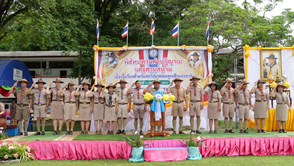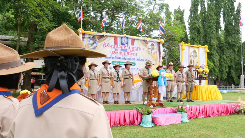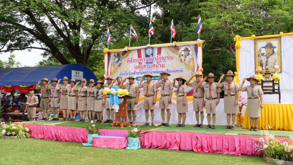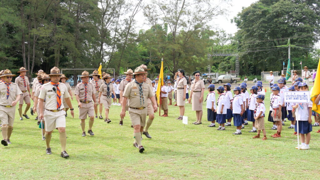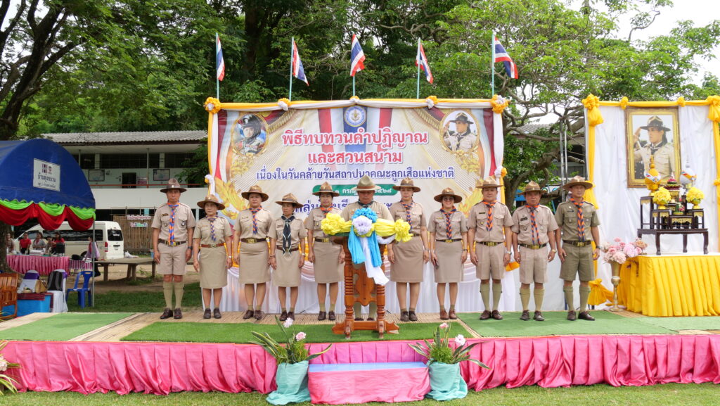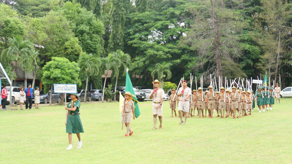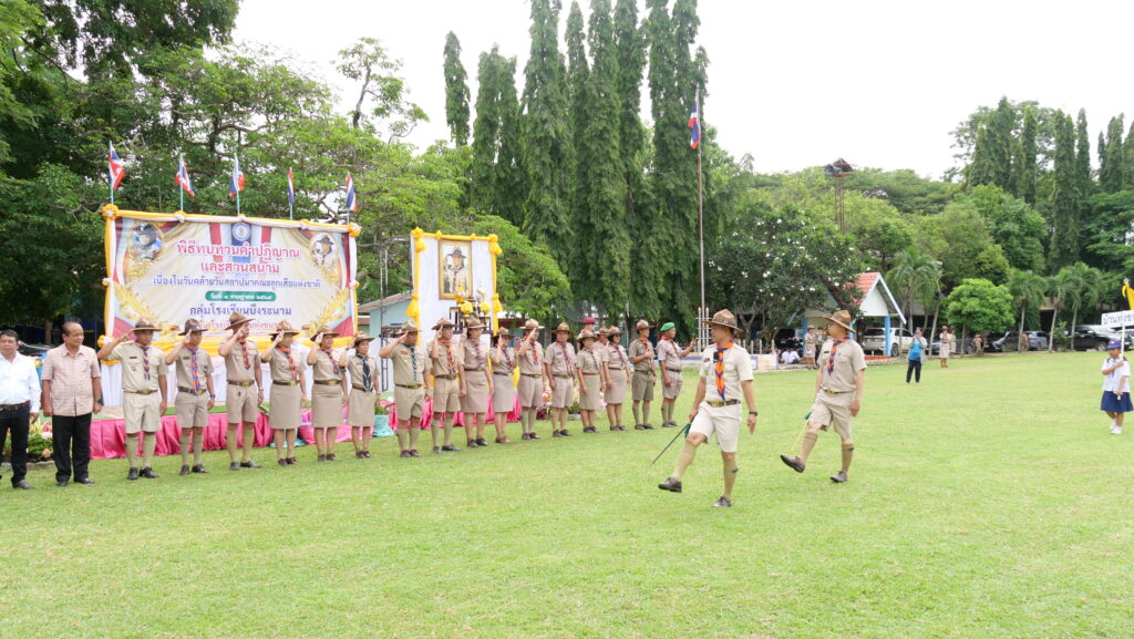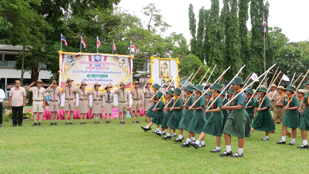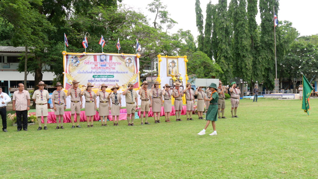 วันที่ 2 กรกฎาคม 2568 นายลิขิต เพ็งประสิทธิพงศ์ ผู้อำนวยการสำนักงานเขตพื้นที่การศึกษาประถมศึกษาศรีสะเกษ เขต 4 เป็นประธานในพิธีทบทวนคำปฏิญาณและสวนสนามลูกเสือ เนื่องในวันคล้ายวันสถาปนาคณะลูกเสือแห่งชาติ 1 กรกฎาคม ประจำปี 2568 กลุ่มโรงเรียนบึงระนาม พร้อมตรวจเยี่ยมให้กำลังใจผู้อำนวยการลูกเสือ ผู้บังคับบัญชาลูกเสือ และกองลูกเสือ – เนตรนารี จาก 19 โรงเรียน โดยมี นายสมศักดิ์ วงค์บุดดี ผู้อำนวยการโรงเรียนบ้านสวนกล้วย ประธานกลุ่มโรงเรียนบึงระนาม กล่าวรายงาน พร้อมด้วยผู้อำนวยการลูกเสือ ผู้บังคับบัญชาลูกเสือจำนวน 88 คน และลูกเสือ – เนตรนารี จำนวน 761 คน ที่มาร่วมพิธี ณ สนามโรงเรียนบ้านทุ่งขนวน อำเภอกันทรลักษ์ จังหวัดศรีสะเกษ การดำเนินการจัดพิธีเป็นไปด้วยความเรียบร้อย