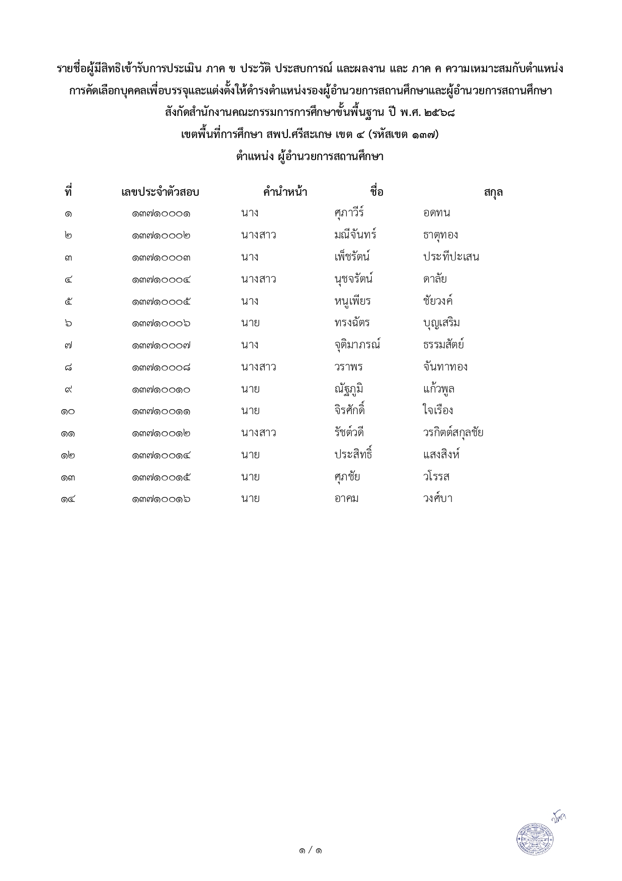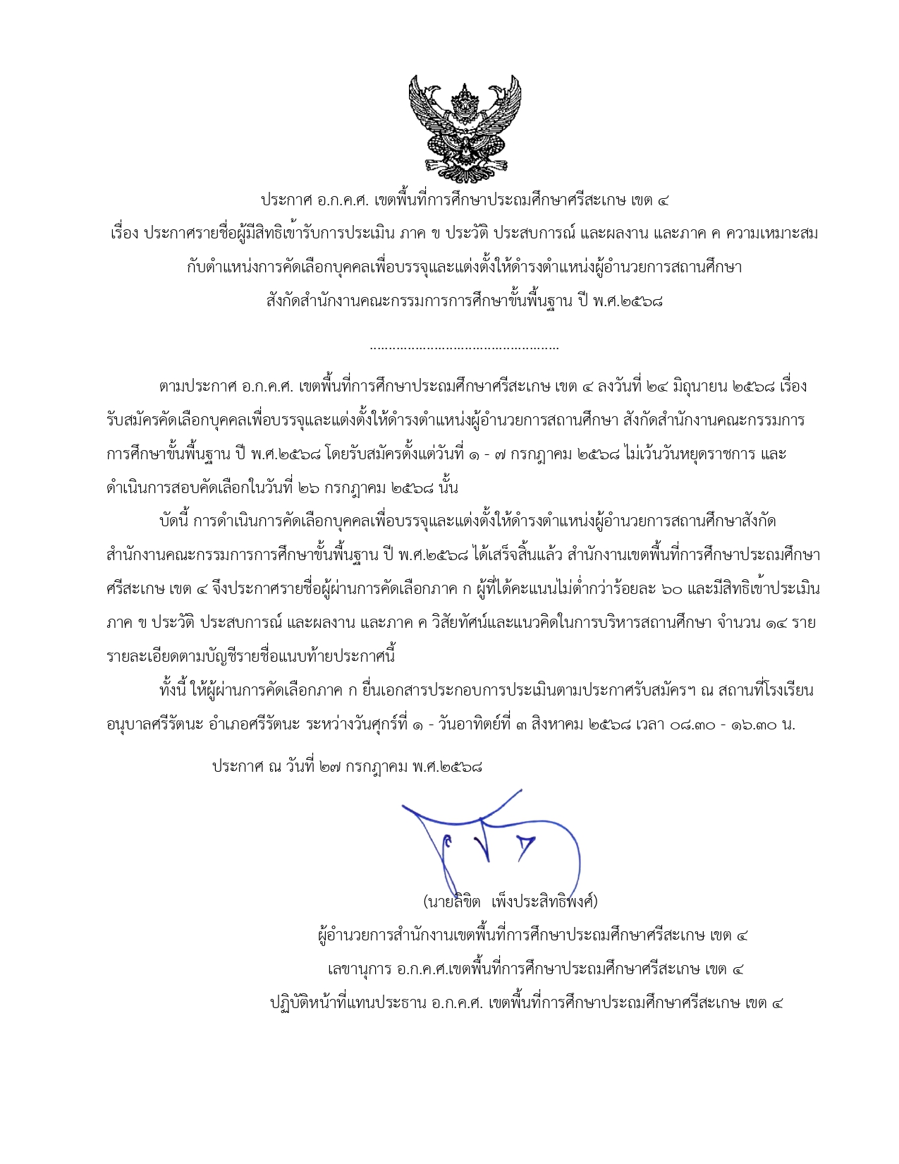 ประกาศ อ.ก.ค.ศ. เรื่อง ประกาศรายชื่อผู้มีสิทธิเข้ารับการประเมิน ภาค ข ประวัติ ประสบการณ์ และผลงาน และภาค ค ความเหมาะสมกับตำแหน่งการคัดเลือกบุคคลเพื่อบรรจุและแต่งตั้งให้ดำรงตำแหน่งผู้อำนวยการสถานศึกษา สังกัดสำนักงานคณะกรรมการการศึกษาขั้นพื้นฐาน ปี พ.ศ.๒๕๖๘By อมร ศรีอนันต์ / 27 กรกฎาคม 2025