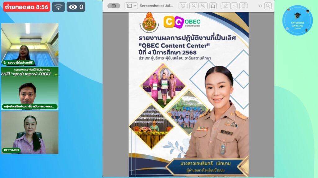 วันที่ 24 กรกฎาคม 2568 เวลา 13:00 – 14:30 น. นายลิขิต เพ็งประสิทธิพงศ์ ผู้อำนวยการสำนักงานเขตพื้นที่การศึกษาประถมศึกษาศรีสะเกษ เขต 4 มอบหมายให้ นางสาวนารีรัตน์ เอกศิริ รองผู้อำนวยการสำนักงานเขตพื้นที่การศึกษาประถมศึกษาศรีสะเกษ เขต 4 เป็นประธานการประชุมนิเทศ ติดตาม (ออนไลน์) การจัดทำผลการปฏิบัติที่เป็นเลิศ Best Practice การขับเคลื่อนระบบคลังสื่อเทคโนโลยีดิจิทัล ระดับการศึกษาขั้นพื้นฐาน Obec Content Center ปี 2568 โดยมี ศึกษานิเทศก์ ผู้รับผิดชอบงานส่งเสริมพัฒนาสื่อ นวัตกรรม และเทคโนโลยีทางการศึกษา เข้าร่วมประชุมผ่านระบบ SteamYard
