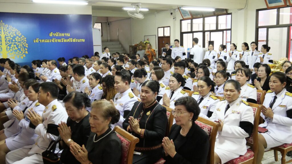 ในการนี้ นายลิขิต เพ็งประสิทธิพงศ์ ผู้อำนวยการสำนักงานเขตพื้นที่การศึกษาประถมศึกษาศรีสะเกษ เขต 4 พร้อมด้วยผู้บริหารสถานศึกษา ข้าราชการครูและบุคลากรทางการศึกษาในสังกัด เข้าร่วมพิธี โดยมี ศ.ดร.นฤมล ภิญโญสินวัฒน์ รัฐมนตรีว่าการกระทรวงศึกษาธิการ เป็นประธานในพิธี พร้อมด้วย นางสาวลิณธิภรณ์ วริณวัชรโรจน์ รัฐมนตรีช่วยว่าการกระทรวงศึกษาธิการ นายสุเทพ แก่งสันเทียะ ปลัดกระทรวงศึกษาธิการ ว่าที่ร้อยตรี ธนุ วงษ์จินดา เลขาธิการคณะกรรมการการศึกษาขั้นพื้นฐาน นางเกศทิพย์ ศุภวานิช รองเลขาธิการคณะกรรมการการศึกษาขั้นพื้นฐาน ร่วมด้วย นายอนุพงศ์ สุขสมนิตย์ ผู้ว่าราชการจังหวัดศรีสะเกษ รวมถึงหัวหน้าส่วนราชการ ข้าราชการ ผู้บริหารองค์กรปกครองส่วนท้องถิ่น ผู้นำชุมชน ญาติพี่น้องผู้วายชนม์ และประชาชน เข้าร่วมพิธี