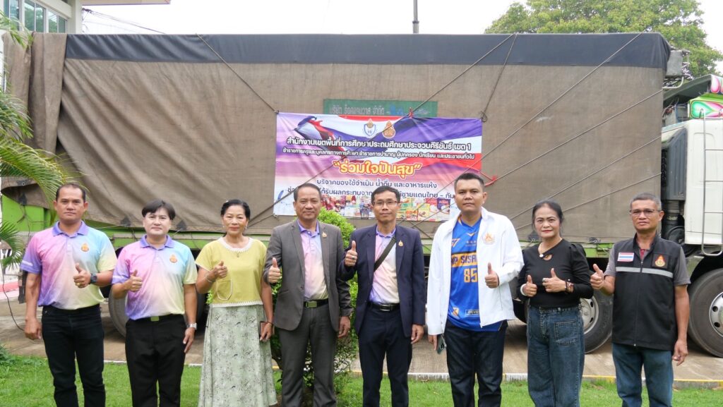 วันที่ 3 สิงหาคม 2568 นายลิขิต เพ็งประสิทธิพงศ์ ผู้อำนวยการสำนักงานเขตพื้นที่การศึกษาประถมศึกษาศรีสะเกษ เขต 4 มอบหมายให้ นายไตรวิชญ์ เนียมมูล ปฏิบัติหน้าที่รองผู้อำนวยการสำนักงานเขตพื้นที่การศึกษาประถมศึกษาศรีสะเกษ เขต 4 พร้อมด้วย นายพลกฤต บุตรอุดม ผู้อำนวยการกลุ่มอำนวยการ และบุคลากรในสังกัด สพป.ศรีสะเกษ เขต 4 เป็นผู้แทนรับมอบของใช้จำเป็น น้ำดื่ม และอาหารแห้ง จากสำนักงานเขตพื้นที่การศึกษาประถมศึกษาประจวบคีรีขันธ์ เขต 1 ข้าราชการครูและบุคลากรทางการศึกษา ข้าราชการบำนาญ ผู้ปกครอง นักเรียน และประชาชนทั่วไป “ร่วมใจปันสุข” ช่วยเหลือผู้ได้รับผลกระทบจากเหตุการณ์ชายแดนไทย – กัมพูชา โดย ดร.กันยมาส ชูจีน ผู้อำนวยการสำนักงานเขตพื้นที่การศึกษาประถมศึกษาประจวบคีรีขันธ์ เขต 1 มอบหมายให้ นายชัย ชาตรูปไพศาล รองผู้อำนวยการสำนักงานเขตพื้นที่การศึกษาประถมศึกษาประจวบคีรีขันธ์ เขต 1 นายสิงขร ริโยธา รองผู้อำนวยการสำนักงานเขตพื้นที่การศึกษาประถมศึกษาประจวบคีรีขันธ์ เขต 1 นางพิมลพรรณ วงศ์ทิม ผู้บริหารสถานศึกษา และบุคลากรในสังกัด สพป.ประจวบคีรีขันธ์ เขต 1 เป็นผู้แทนมอบสิ่งของดังกล่าว