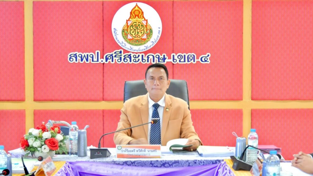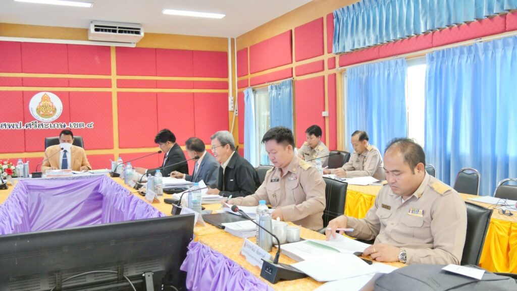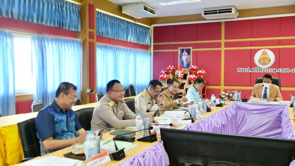 วันที่ 22 กันยายน 2568 ณ ห้องประชุมมออีแดง สำนักงานเขตพื้นที่การศึกษาประถมศึกษาศรีสะเกษ เขต 4 ว่าที่ร้อยตรี ทวีศักดิ์ นามศรี ประธาน อ.ก.ค.ศ.เขตพื้นที่การศึกษาประถมศึกษาศรีสะเกษ เขต 4 พร้อมด้วย คณะอนุกรรมการ อ.ก.ค.ศ.เขตพื้นที่การศึกษาประถมศึกษาศรีสะเกษ เขต 4 เข้าร่วมประชุมคณะอนุกรรมการ อ.ก.ค.ศ.เขตพื้นที่การศึกษาประถมศึกษาศรีสะเกษ เขต 4 ครั้งที่ 10/2568 เพื่อพิจารณาอนุมัติและเห็นชอบด้านการบริหารงานบุคคลด้านต่าง ๆ ได่แก่ อนุมัติตัดโอนตำแหน่งและอัตราเงินเดือนข้าราชการครูและบุคลากรทางการศึกษาตำแหน่งครู กรณีตำแหน่งที่มีคนครอง อนุมัติการตัดโอนตำแหน่งและอัตราเงินเดือนข้าราชการครูและบุคลากรทางการศึกษา สายงานการสอน กรณีตำแหน่งว่าง อนุมัติผลการประเมินข้าราชการครูและบุคลากรทางการศึกษา มีวิทยฐานะครูชำนาญการและเลื่อนเป็นวิทยฐานะครูชำนาญการพิเศษ (หลักเกณฑ์ว 9/2564) กรณีผ่านการประเมิน ด้านที่ 1 และด้านที่ 2 อนุมัติผลการประเมินบุคคลเพื่อเลื่อนระดับตำแหน่งข้าราชการครูและบุคลากร ทางการศึกษา ตำแหน่งบุคลากรทางการศึกษาอื่น ตามมาตรา 38 ค.(2) ผู้ดำรงตำแหน่งประเภทวิชาการ ให้ดำรง ตำแหน่งระดับชำนาญการ เห็นชอบตั้งกรรมการประเมินข้าราชการครูและบุคลากรทางการศึกษา ตำแหน่ง ครู มีวิทยฐานะครูชำนาญการและครูชำนาญการพิเศษ (หลักเกณฑ์ ว 9/2564) การทดลองปฏิบัติหน้าที่ราชการของข้าราชการครูและบุคลากรทางการศึกษาตำแหน่งบุคลากร ทางการศึกษาอื่น ตามมาตรา 38 ค (2) สังกัดสำนักงานคณะกรรมการการศึกษาขั้นพื้นฐาน การย้ายข้าราชการครูและบุคลากรทางการศึกษา ตำแหน่งผู้บริหารสถานศึกษา สังกัดสำนักงานคณะกรรมการการศึกษาขั้นพื้นฐาน (การย้ายกรณีปกติ – กรณีพิเศษ) ปี พ.ศ. 2568 อนุมัติส่งคำร้องขอย้ายข้าราชการครูและบุคลากรทางการศึกษา ตำแหน่งผู้บริหารสถานศึกษา สังกัดสำนักงานคณะกรรมการการศึกษาขั้นพื้นฐาน ประจำปี พ.ศ. ๒๕๖๘ ไปต่างสำนักงานเขตพื้นที่การศึกษากรณีการย้ายหลังจากการย้ายประจำปี การบรรจุและแต่งตั้งข้าราชการครูและบุคลากรทางการศึกษา ตำแหน่งผู้อำนวยการสถานศึกษา จากบัญชีผู้ที่ได้รับการคัดเลือกสำนักงานเขตพื้นที่การศึกษาประถมศึกษาศรีสะเกษ เขต 4 อนุมัติการย้ายข้าราชการครูและบุคลากรทางการศึกษา ตำแหน่งครู สังกัดสำนักงานคณะกรรมการการศึกษาขั้นพื้นฐาน ครั้งที่ 2 ประจำปี พ.ศ. 2568 ผ่านระบบ TRS อนุมัติผลการประเมินการเตรียมความพร้อมและพัฒนาอย่างเข้ม และแต่งตั้งครูผู้ช่วยให้ดำรงตำแหน่งครู รับเงินเดือนในอันดับ คศ.1 การเลื่อนเงินเดือนข้าราชการครูและบุคลากรทางการศึกษา