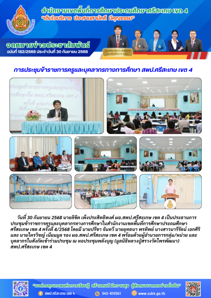 การประชุมข้าราชการครูและบุคลากรทางการศึกษา สพป.ศรีสะเกษ เขต 4By นายกัลญศักดิ์ รัตนาฆพิมพ์ / 9 ตุลาคม 2025