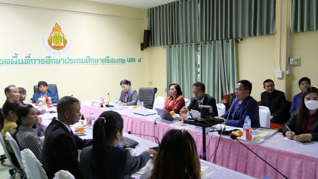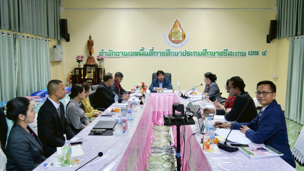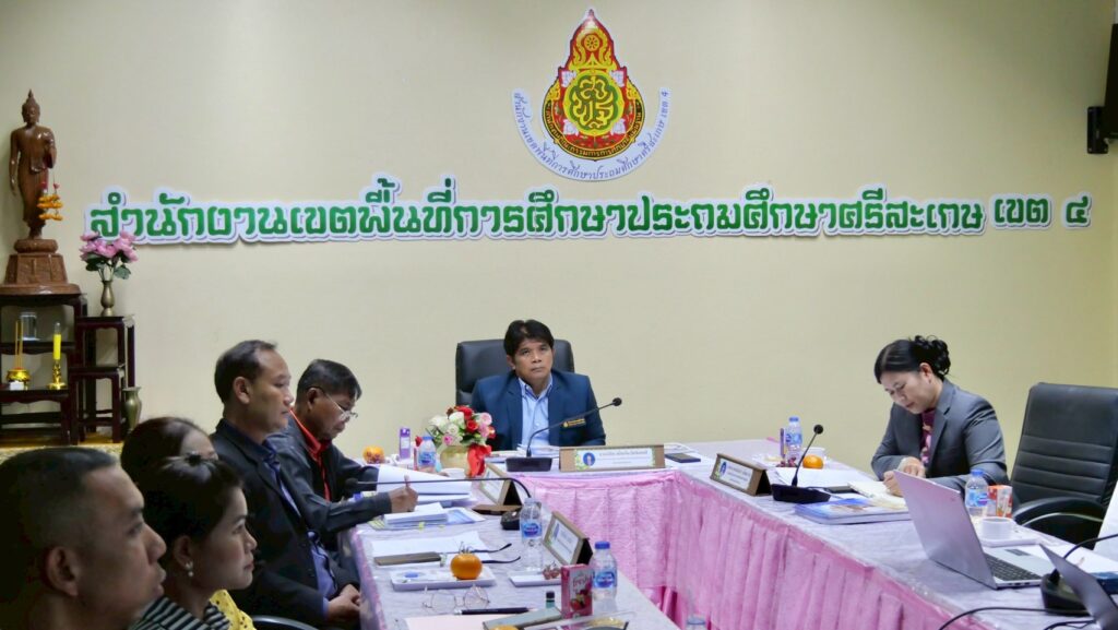 วันที่ 2 ตุลาคม 2568 ที่ห้องประชุมภูละออ สพป.ศรีสะเกษ เขต 4 นายลิขิต เพ็งประสิทธิพงศ์ ผอ.สพป.ศรีสะเกษ เขต 4 เป็นประธานคณะกรรมการประเมินสัมฤทธิผลการปฏิบัติหน้าที่ตำแหน่งรองผู้อำนวยการสถานศึกษา และผู้อำนวยการสถานศึกษา สังกัด สพป.ศรีสะเกษ เขต 4 พร้อมด้วยคณะกรรมการประเมินฯ ได้แก่ นายเสถียร จำเริญ ผู้ทรงคุณวุฒิทางด้านการบริหารการศึกษา และ นางสาวกรรณิการ์ กลิ่นหวาน ผู้อำนวยการโรงเรียนบ้านสังเม็ก ดำเนินการประเมินสัมฤทธิผลการปฏิบัติหน้าที่ของผู้บริหารสถานศึกษา โดยมีผู้รับการประเมิน จำนวน 4 ราย ประกอบด้วย ผู้อำนวยการสถานศึกษา จำนวน 1 ราย ได้แก่ นางสาวบุษกร ลาวรรณ ผอ.โรงเรียนบ้านท่าคล้อ และรองผู้อำนวยการสถานศึกษา จำนวน 3 ราย ได้แก่ นายศราวุธ จรเดช รอง ผอ.โรงเรียนบ้านจำนรรจ์ ว่าที่ร้อยเอกรัฐชัย ฝอยทอง รอง ผอ.โรงเรียนบ้านจานทองกวาววิทยา และนายวิวรรชน์ เชื้อจิตร รอง ผอ.โรงเรียนบ้านสร้างเม็ก การดำเนินการประเมินเป็นไปด้วยความเรียบร้อย