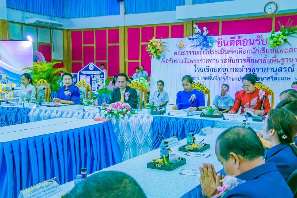 วันที่ 2 ตุลาคม 2568 นายลิขิต เพ็งประสิทธิพงศ์ ผอ.สพป.ศรีสะเกษ เขต 4 มอบหมายให้ นายปรีชา จันทวี รอง ผอ.สพป.ศรีสะเกษ เขต 4 พร้อมด้วยคณะกรรมการประเมินฯ ระดับเขตพื้นที่การศึกษา ดำเนินการประเมินคัดเลือกนักเรียนเพื่อรับรางวัลพระราชทาน ประจำปีการศึกษา 2568 เด็กชายภัทร์ดนัย ท้าวพันแดง นักเรียนชั้นประถมศึกษาปีที่ 4/9 โรงเรียนอนุบาลดำรงราชานุสรณ์ โดยมี นายสิทธิวัฒน์ ธนบูลย์พิพัฒน์ ผอ.โรงเรียนอนุบาลดำรงราชานุสรณ์ พร้อมด้วยคณะกรรมการสถานศึกษา ผู้ทรงคุณวุฒิ และเครือข่ายการศึกษาจากภาคส่วนต่างๆ รวมถึงคณะครูและนักเรียน ให้การต้อนรับ