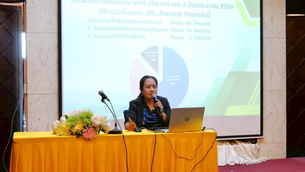 วันที่ 3 ตุลาคม 2568 นายลิขิต เพ็งประสิทธิพงศ์ ผอ.สพป.ศรีสะเกษ เขต 4 เป็นประธานในพิธีเปิดการประชุมเชิงปฏิบัติการ “วิเคราะห์ สังเคราะห์ และประเมินผลการดำเนินงานโครงการตามแผนปฏิบัติการ ประจำปีงบประมาณ พ.ศ. 2568 ของ สพป.ศรีสะเกษ เขต 4 ซึ่งจัดขึ้นระหว่างวันที่ 3 – 4 ตุลาคม 2568 ณ โรงแรมเดอะริเวอร์ นครพนม จังหวัดนครพนม โดยมี นางสาวนารีรัตน์ เอกศิริ รอง ผอ.สพป.ศรีสะเกษ เขต 4 พร้อมด้วยผู้อำนวยการกลุ่ม/หน่วย และคณะกรรมการดำเนินงานโครงการฯ รวมถึงบุคลากรในสังกัดเข้าร่วมกิจกรรมดังกล่าว