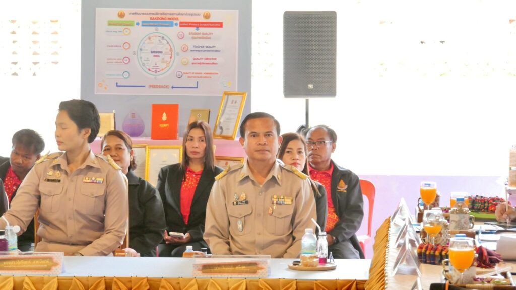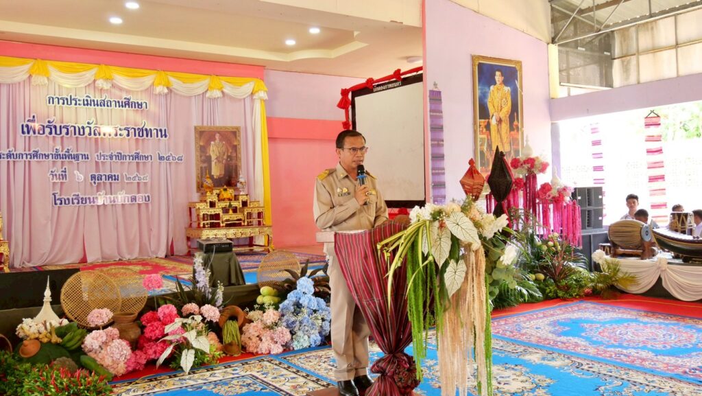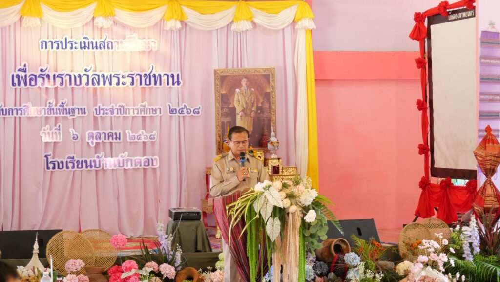 วันที่ 6 ตุลาคม 2568 นายลิขิต เพ็งประสิทธิพงศ์ ผอ.สพป.ศรีสะเกษ เขต 4 ในนามประธานคณะกรรมการ พร้อมด้วยคณะกรรมการประเมินฯ ระดับเขตพื้นที่การศึกษา ลงพื้นที่ดำเนินการประเมินสถานศึกษาเพื่อรับรางวัลพระราชทาน ประเภทประถมศึกษา ขนาดกลาง ประจำปีการศึกษา 2568 ณ โรงเรียนบ้านบักดอง อ.ขุนหาญ จ.ศรีสะเกษ พร้อมได้กล่าวชื่นชมทางโรงเรียนและให้ข้อเสนอแนะเพิ่มเติมในการเตรียมความพร้อมสถานศึกษาเพื่อรับการประเมินในระดับจังหวัดต่อไป โดยมี นายสัญญา ศรีสุข ผอ.โรงเรียนบ้านบักดอง พร้อมด้วยคณะกรรมการสถานศึกษา และเครือข่ายการศึกษาจากภาคส่วนต่างๆ คณะครู และนักเรียนให้การต้อนรับและอำนวยความสะดวกเป็นอย่างดี