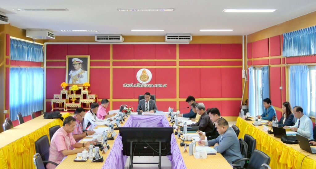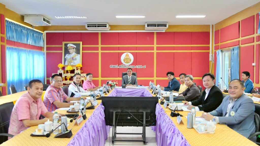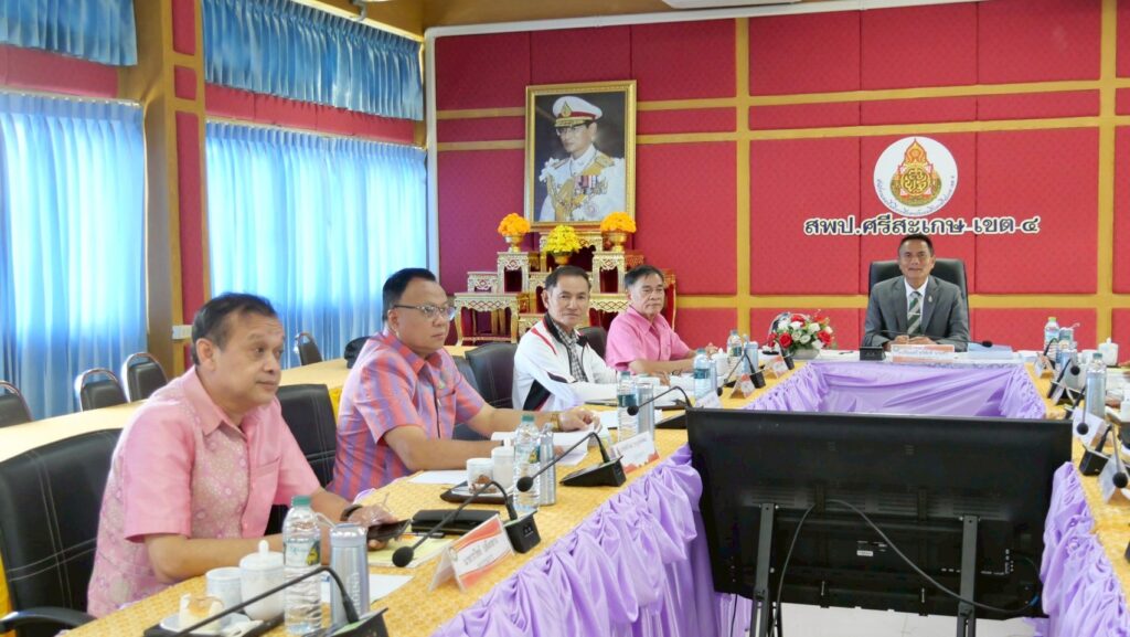 วันที่ 9 ตุลาคม 2568 ที่ห้องประชุมมออีแดง สำนักงานเขตพื้นที่การศึกษาประถมศึกษาศรีสะเกษ เขต 4 ว่าที่ร้อยตรี ทวีศักดิ์ นามศรี ประธาน อ.ก.ค.ศ.เขตพื้นที่การศึกษาประถมศึกษาศรีสะเกษ เขต 4 พร้อมด้วย นายลิขิต เพ็งประสิทธิพงศ์ ผอ.สพป.ศรีสะเกษ เขต 4 และคณะอนุกรรมการ อ.ก.ค.ศ.เขตพื้นที่การศึกษาประถมศึกษาศรีสะเกษ เขต 4 เข้าร่วมประชุมคณะอนุกรรมการ อ.ก.ค.ศ.เขตพื้นที่การศึกษาประถมศึกษาศรีสะเกษ เขต 4 ครั้งที่ 11/2568 เพื่อพิจารณาอนุมัติและเห็นชอบด้านการบริหารงานบุคคลด้านต่าง ๆ ได้แก่ ขออนุมัติผลการประเมินข้าราชการครูและบุคลากรทางการศึกษา มีวิทยฐานะครูชำนาญการและเลื่อนเป็นวิทยฐานะครูชำนาญการพิเศษ (หลักเกณฑ์ ว 9/2564) กรณีผ่านการประเมิน ด้านที่ 1 และด้านที่ 2 ขอความเห็นชอบแต่งตั้งกรรมการประเมินข้าราชการครูและบุคลากรทางการศึกษา ตำแหน่ง ครู มีวิทยฐานะครูชำนาญการและครูชำนาญการพิเศษ (หลักเกณฑ์ ว 9/2564) การคัดเลือกนักศึกษาทุนตามโครงการครูรัก(ษ์)ถิ่น รุ่นที่ 2 เพื่อบรรจุและแต่งตั้งเป็นข้าราชการครูและบุคลากรทางการศึกษา ตำแหน่ง ครูผู้ช่วย สังกัดสำนักงานคณะกรรมการการศึกษาขั้นพื้นฐาน ปี พ.ศ.2568 ขออนุมัติการย้ายข้าราชการครูและบุคลากรทางการศึกษา ตำแหน่งครู สังกัดสำนักงานคณะกรรมการการศึกษาขั้นพื้นฐาน ครั้งที่ 2 รอบที่ 2 ประจำปี พ.ศ.2568 ผ่านระบบ TRS(Teacher Rotation System) ขออนุมัติแต่งตั้งคณะกรรมการกลั่นกรองการย้ายข้าราชการครูและบุคลากรทางการศึกษา ตำแหน่งครู สังกัดกระทรวงศึกษาธิการ ในระบบ TRS (Teacher Rotation System) การกำหนดสัดส่วนของตำแหน่งว่าง ตำแหน่งผู้บริหารสถานศึกษาเพื่อใช้ในการย้ายและแต่งตั้งจากบัญชีผู้ได้รับการคัดเลือกหรือจะใช้สำหรับการคัดเลือก และขออนุมัติการย้ายข้าราชการครูและบุคลากรทางการศึกษา ตำแหน่งครู สังกัดสำนักงานคณะกรรมการการศึกษาขั้นพื้นฐาน ครั้งที่ 2 รอบที่ 3 ประจำปี พ.ศ.2568 ผ่านระบบ TRS (Teacher Rotation System)