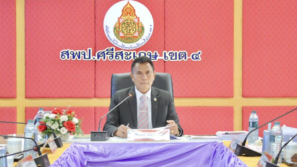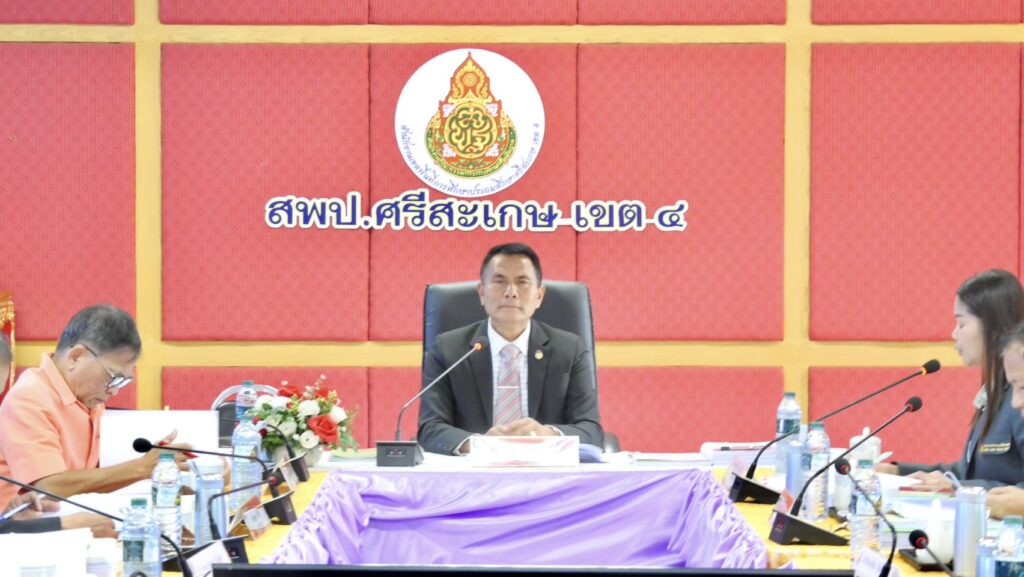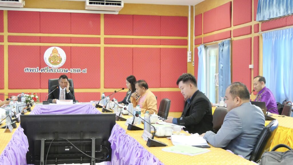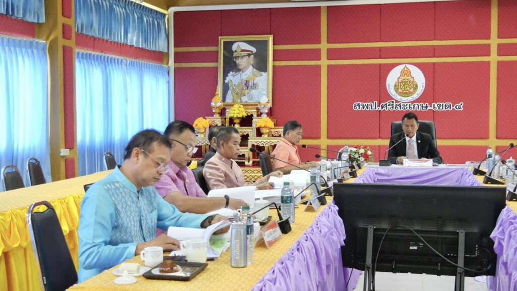 วันที่ 24 ตุลาคม 2568 ที่ห้องประชุมมออีแดง สำนักงานเขตพื้นที่การศึกษาประถมศึกษาศรีสะเกษ เขต 4 ว่าที่ร้อยตรี ทวีศักดิ์ นามศรี ประธาน อ.ก.ค.ศ.เขตพื้นที่การศึกษาประถมศึกษาศรีสะเกษ เขต 4 พร้อมด้วย คณะอนุกรรมการ อ.ก.ค.ศ.เขตพื้นที่การศึกษาประถมศึกษาศรีสะเกษ เขต 4 เข้าร่วมประชุมคณะอนุกรรมการ อ.ก.ค.ศ.เขตพื้นที่การศึกษาประถมศึกษาศรีสะเกษ เขต 4 ครั้งที่ 12/2568 โดย นายลิขิต เพ็งประสิทธิพงศ์ ผอ.สพป.ศรีสะเกษ เขต 4 มอบหมายให้ นางสาวนารีรัตน์ เอกศิริ ผู้ช่วยเลขานุการคณะอนุกรรมการ อ.ก.ค.ศ.เขตพื้นที่การศึกษาประถมศึกษาศรีสะเกษ เขต 4 เข้าร่วมประชุมในครั้งนี้ เพื่อพิจารณาอนุมัติและเห็นชอบด้านการบริหารงานบุคคลด้านต่างๆ ได่แก่ ขออนุมัติผลการประเมินข้าราชการครูและบุคลากรทางการศึกษา มีวิทยฐานะครูชำนาญการและเลื่อนเป็นวิทยฐานะครูชำนาญการพิเศษ (หลักเกณฑ์ ว 9/2564) กรณีผ่านการประเมิน ด้านที่ 1 และด้านที่ 2 ขอความเห็นชอบแต่งตั้งกรรมการประเมินข้าราชการครูและบุคลากรทางการศึกษา ตำแหน่ง ครู มีวิทยฐานะครูชำนาญการและครูชำนาญการพิเศษ (หลักเกณฑ์ ว9/2564) การกำหนดสัดส่วนของตำแหน่งว่าง ตำแหน่งผู้บริหารสถานศึกษาเพื่อใช้ในการย้ายและแต่งตั้งจากบัญชีผู้ได้รับการคัดเลือกหรือจะใช้สำหรับการคัดเลือก ขอความเห็นชอบบัญชีรายชื่อศึกษานิเทศก์และผู้ทรงคุณวุฒิ เพื่อแต่งตั้งเป็นกรรมการเตรียมความพร้อมและพัฒนาอย่างเข้ม ตำแหน่งครูผู้ช่วย การพิจารณาเลื่อนเงินเดือนข้าราชการครูและบุคลากรทางการศึกษาของสำนักงานเขตพื้นที่การศึกษาประถมศึกษาศรีสะเกษ เขต 4 ครั้งที่ 2 (1 ตุลาคม 2568) กำหนดสัดส่วนของจำนวนตำแหน่งว่างที่จะใช้รับย้ายและที่จะใช้บรรจุและแต่งตั้งจากบัญชีผู้ได้รับการคัดเลือก ตำแหน่งบุคลากรทางการศึกษาอื่น ตามมาตรา 38 ค. (1) ศึกษานิเทศก์ และการคัดเลือกบุคคลเพื่อบรรจุและแต่งตั้งให้ดำรงตำแหน่งศึกษานิเทศก์ สังกัด สำนักงานคณะกรรมการการศึกษาขั้นพื้นฐาน ปี พ.ศ. 2568