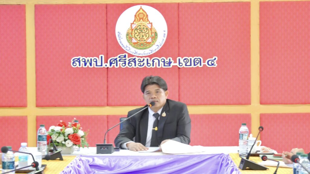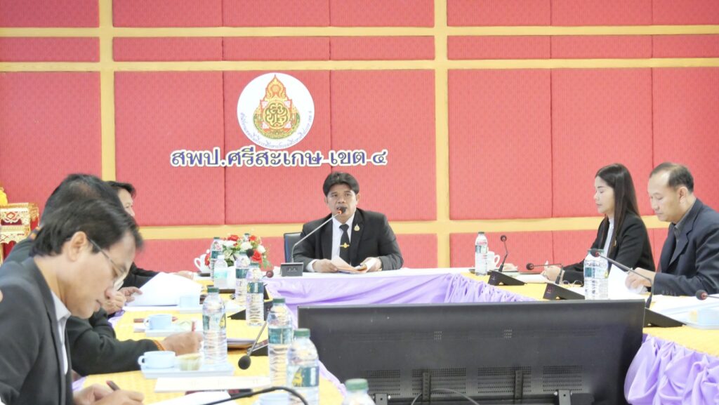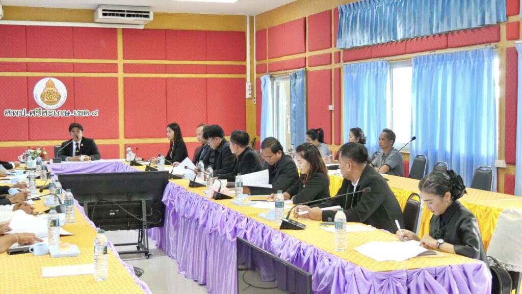 วันที่ 28 ตุลาคม 2568 นายลิขิต เพ็งประสิทธิพงศ์ ผู้อำนวยการสำนักงานเขตพื้นที่การศึกษาประถมศึกษาศรีสะเกษ เขต 4 เป็นประธานการประชุมคณะกรรมการบริหารอัตรากำลังในสถานศึกษา ระดับเขตพื้นที่การศึกษา เพื่อพิจารณาการบริหารจัดการอัตรากำลังของสถานศึกษาในสังกัดให้เป็นไปอย่างเหมาะสม และมีประสิทธิภาพ รองรับการจัดการเรียนการสอน และสนับสนุนคุณภาพการศึกษาในพื้นที่อย่างต่อเนื่อง โดยมี นางสาวนารีรัตน์ เอกศิริ รอง ผอ.สพป.ศรีสะเกษ เขต 4 นายยุทธนา พรทิพย์ รอง ผอ.สพป.ศรีสะเกษ เขต 4 พร้อมด้วยคณะกรรมการฯ เข้าร่วมประชุม ณ ห้องประชุมมออีแดง สำนักงานเขตพื้นที่การศึกษาประถมศึกษาศรีสะเกษ เขต 4