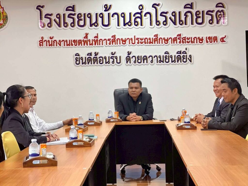 ระหว่างวันที่ 3-7 พฤศจิกายน 2568 นายลิขิต เพ็งประสิทธิพงศ์ ผู้อำนวยการสำนักงานเขตพื้นที่การศึกษาประถมศึกษาศรีสะเกษ เขต 4 มอบหมายให้ นายไตรวิชญ์ เนียมมูล รอง ผอ.สพป.ศรีสะเกษ เขต 4 พร้อมด้วยประธานกลุ่มโรงเรียน และคณะศึกษานิเทศก์ประจำกลุ่มโรงเรียน ลงพื้นที่นิเทศ ติดตามความพร้อมการเปิดภาคเรียนที่ 2 ปีการศึกษา 2568 ของกลุ่มโรงเรียนตำหนักไทร กลุ่มโรงเรียนน้ำตกห้วยจันทน์ และกลุ่มโรงเรียนขุนโพธิ์ภูไพร อ.ขุนหาญ จ.ศรีสะเกษ