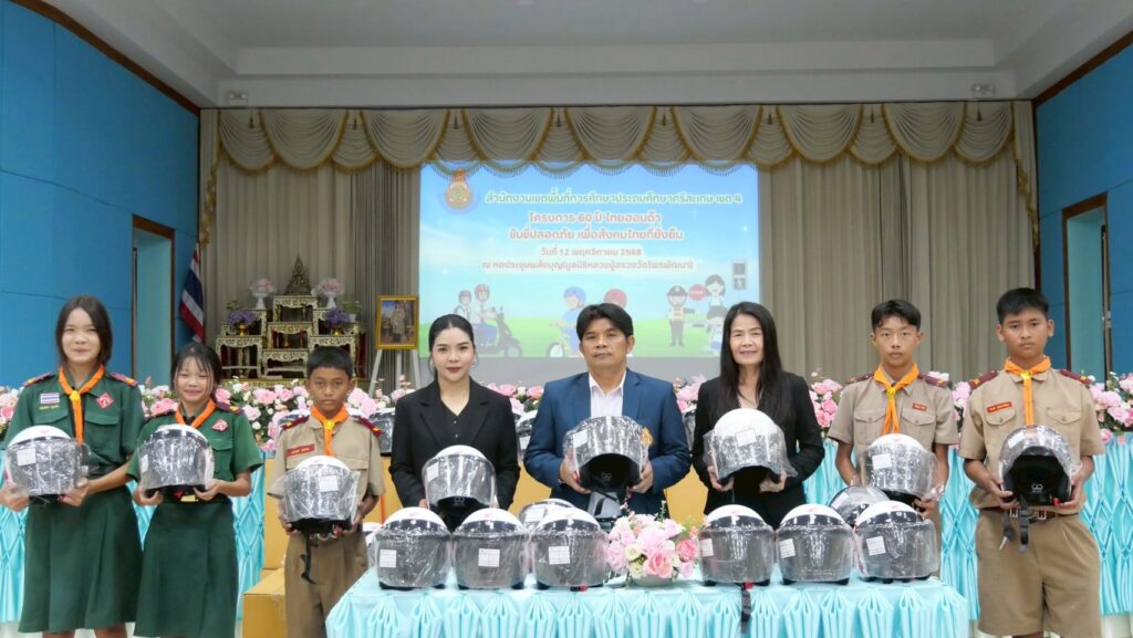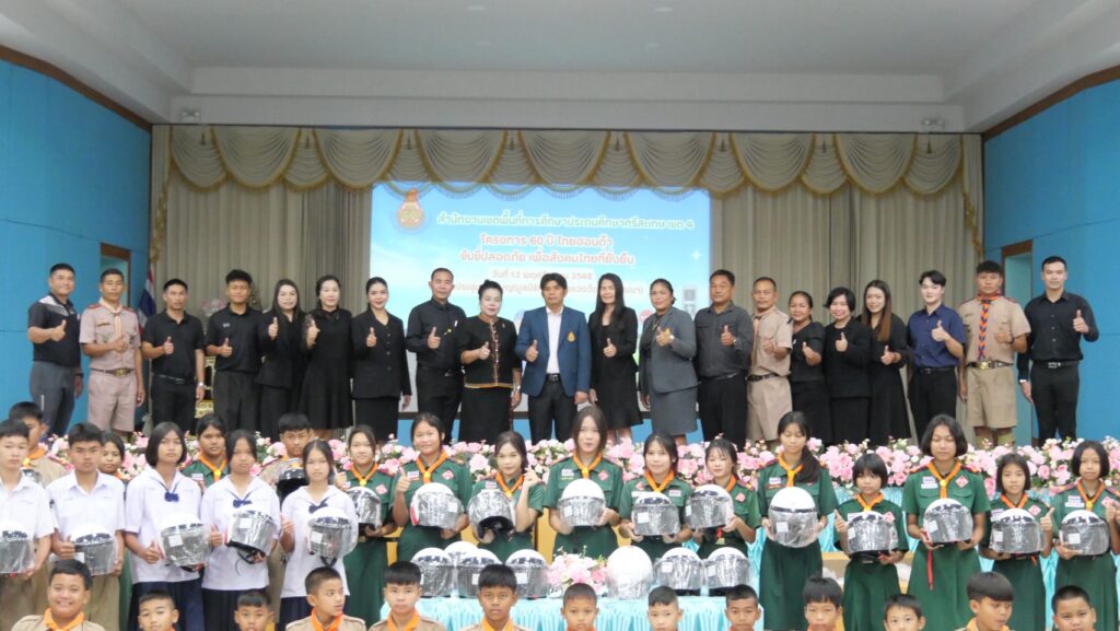 วันที่ 12 พฤศจิกายน 2568 นายลิขิต เพ็งประสิทธิพงศ์ ผู้อำนวยการสำนักงานเขตพื้นที่การศึกษาประถมศึกษาศรีสะเกษ เขต 4 เป็นประธานในพิธีมอบหมวกนิรภัย เนื่องในโอกาสครบรอบ 60 ปี การก่อตั้งบริษัท ไทยฮอนด้า จำกัด ตาม “โครงการ 60 ปี ไทยฮอนด้า ขับขี่ปลอดภัย เพื่อสังคมไทยที่ยั่งยืน” เพื่อขยายผลการรณรงค์เพื่อความปลอดภัยให้ครอบคลุมเด็กทั่วประเทศ และปลูกฝังวัฒนธรรมความปลอดภัยในการใช้รถใช้ถนนอย่างยั่งยืน โดย สพป.ศรีสะเกษ เขต 4 ได้รับจัดสรรจำนวน 134 ใบ มอบให้แก่สถานศึกษาในสังกัด ณ หอประชุมพลังบุญ (มูลนิธิหลวงปู่สรวงวัดไพรพัฒนา) สพป.ศรีสะเกษ เขต 4