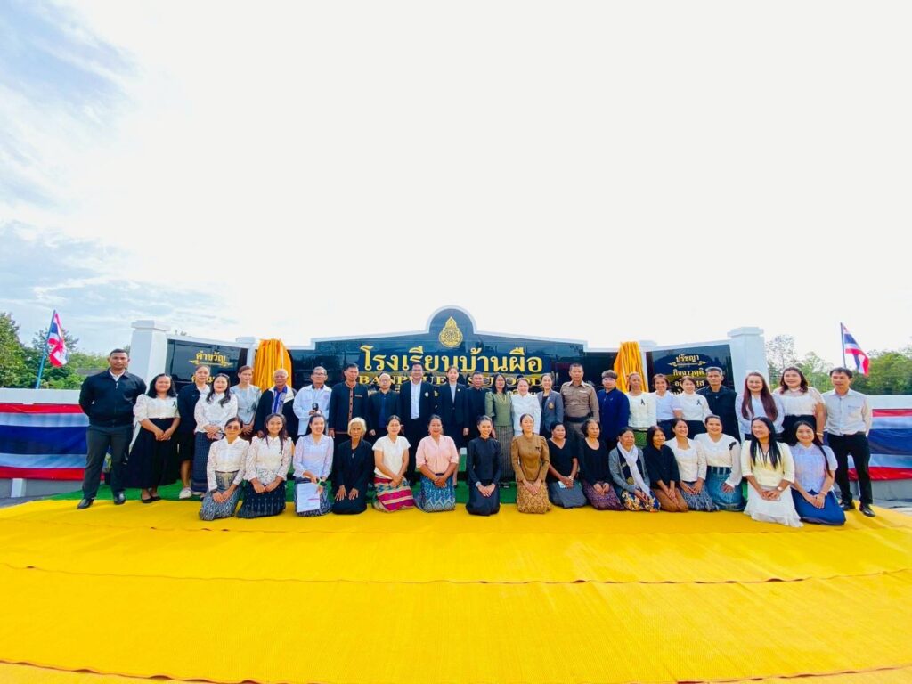 วันที่ 21 พฤศจิกายน 2568 เวลา 09.00 น. นายลิขิต เพ็งประสิทธิพงศ์ ผอ.สพป.ศรีสะเกษ เขต 4 มอบหมายให้ นางสาวนารีรัตน์ เอกศิริ รอง ผอ.สพป.ศรีสะเกษ เขต 4 เป็นประธานในพิธีเปิดป้ายโรงเรียนบ้านผือ โดยมี นางรุ่งนภา หลักเพชร ผอ.โรงเรียนบ้านผือ พร้อมด้วยคณะกรรมการสถานศึกษาฯ ข้าราชการครูและบุคลากรทางการศึกษา ตลอดจนนักเรียน และแขกผู้มีเกียรติ เข้าร่วมพิธีเปิด ณ บริเวณหน้าป้ายโรงเรียนบ้านผือ อ.กันทรลักษ์ จ.ศรีสะเกษ