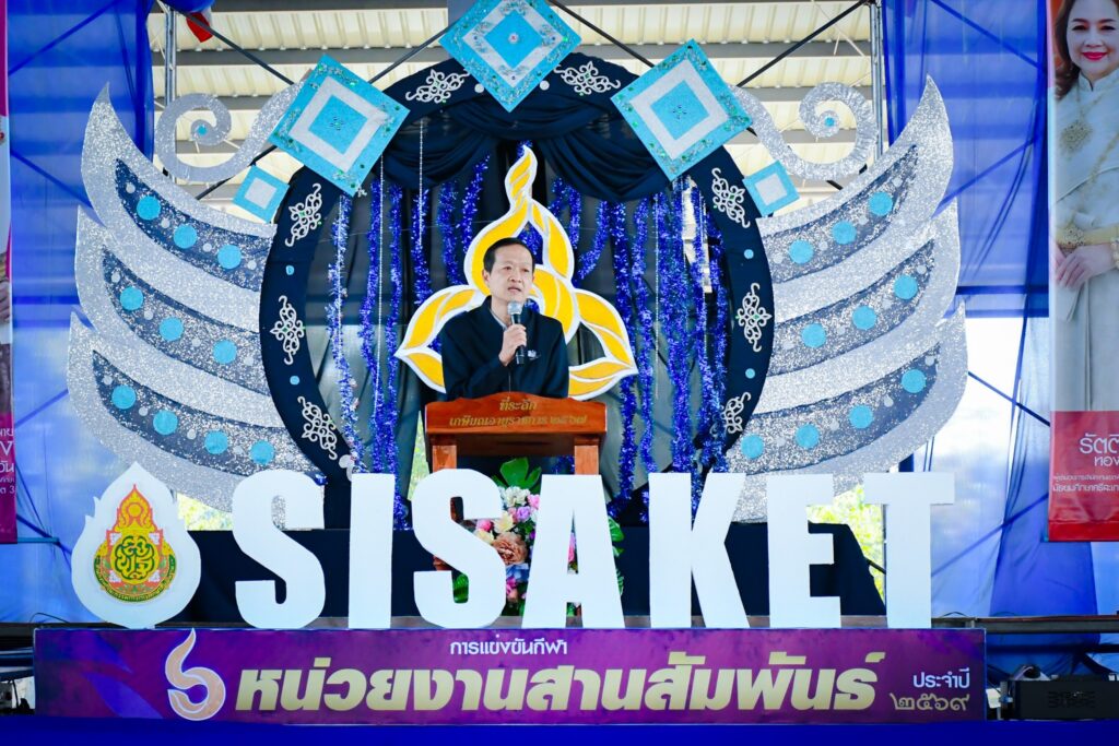 วันที่ 9 มกราคม 2569 นายศักดิ์ ภักเกลี้ยง ผู้อำนวยการสำนักงานเขตพื้นที่การศึกษาประถมศึกษาศรีสะเกษ เขต 4 นำทีมผู้บริหารเขต ได้แก่ นายยุทธนา พรทิพย์, นางสาวนารีรัตน์ เอกศิริ รองผู้อำนวยการสำนักงานเขตพื้นที่การศึกษาประถมศึกษาศรีสะเกษ เขต 4 พร้อมด้วยผู้อำนวยการกลุ่ม/หน่วย และบุคลากรทางการศึกษาในสังกัด เข้าร่วมกิจกรรมการแข่งขันกีฬา “6 หน่วยงานสานสัมพันธ์” ประจำปี 2569 โดยมี นายอนุรัตน์ ธรรมประจำจิต ผู้ว่าราชการจังหวัดศรีสะเกษ ให้เกียรติเป็นประธานในพิธีเปิดกิจกรรม ณ สนามกีฬาโรงเรียนศรีสะเกษวิทยาลัย อำเภอเมืองศรีสะเกษ จังหวัดศรีสะเกษ