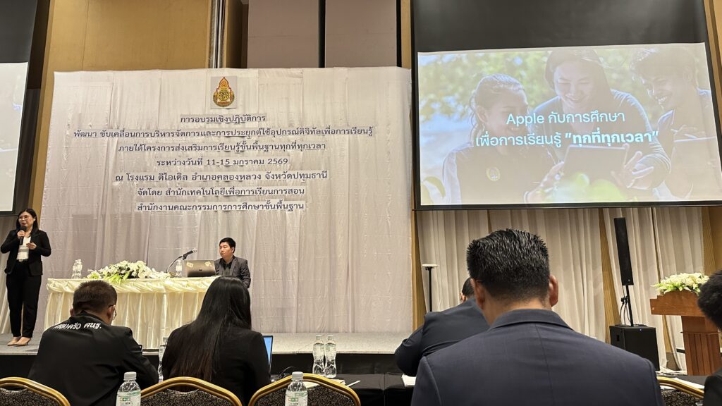 ระหว่างวันที่ 11-15 มกราคม 2569 นายศักดิ์ ภักเกลี้ยง ผู้อำนวยการสำนักงานเขตพื้นที่การศึกษาประถมศึกษาศรีสะเกษ เขต 4 มอบหมายให้ นายธนิน เจริญราษฎร์ ศึกษานิเทศก์ เข้าร่วมอบรมพัฒนา แลกเปลี่ยนเรียนรู้แนวทางการขับเคลื่อนการบริหารจัดการและการประยุกต์ใช้อุปกรณ์ดิจิทัลเพื่อการเรียนรู้แพลตฟอร์ม NDLP(National Digital Learning Platform) ภายใต้โครงการส่งเสริมการเรียนรู้ขั้นพื้นฐานทุกที่ทุกเวลา ประจำปีงบประมาณ พ.ศ. 2569 เพื่อรองรับนโยบายเรียนได้ทุกที่ทุกเวลา (Anywhere Anytime) ณ โรงแรมดิไอเดิล อำเภอคลองหลวง จังหวัดปทุมธานี