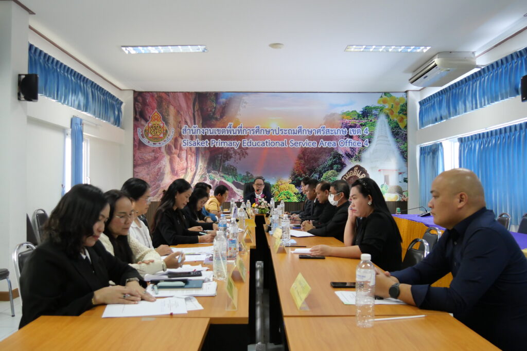วันที่ 19 กุมภาพันธ์ 2569 นายศักดิ์ ภักเกลี้ยง ผู้อำนวยการสำนักงานเขตพื้นที่การศึกษาประถมศึกษาศรีสะเกษ เขต 4 เป็นประธานการประชุมผู้บริหารเขต ครั้งที่ 2/2569 เพื่อขับเคลื่อนนโยบายและจุดเน้นสู่การปฏิบัติ โดยมี นายปรีชา จันทวี, นายยุทธนา พรทิพย์, นางสาวนารีรัตน์ เอกศิริ, นายไตรวิชญ์ เนียมมูล รองผู้อำนวยการสำนักงานเขตพื้นที่การศึกษาประถมศึกษาศรีสะเกษ เขต 4 พร้อมด้วยผู้อำนวยการกลุ่ม/หน่วย เข้าร่วมประชุม ณ ห้องประชุมวังใหญ่ อาคาร 2 ชั้น 2 สำนักงานเขตพื้นที่การศึกษาประถมศึกษาศรีสะเกษ เขต 4