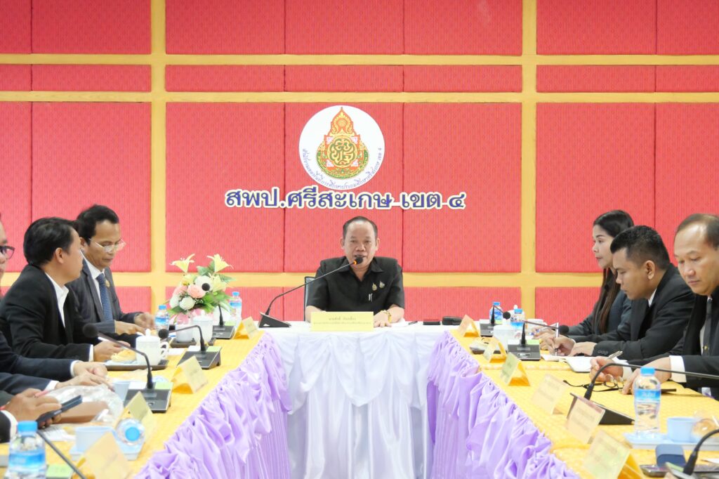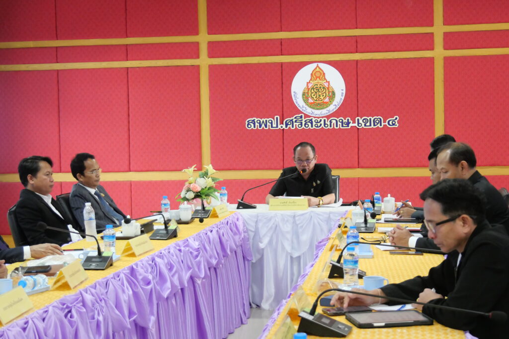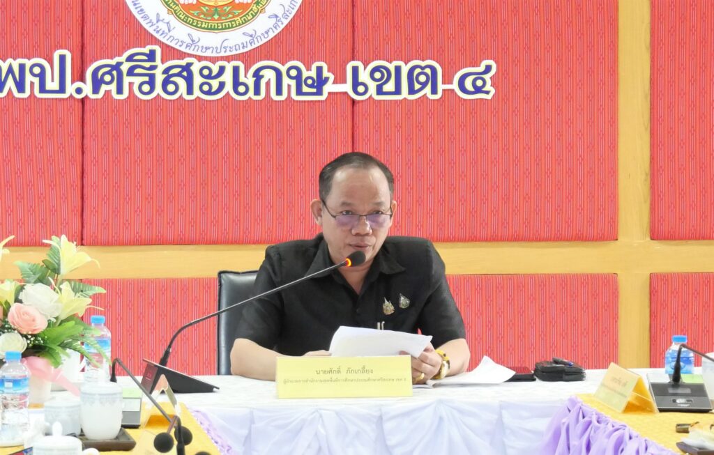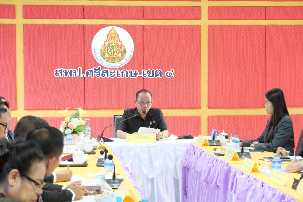 วันที่ 27 กุมภาพันธ์ 2569 นายศักดิ์ ภักเกลี้ยง ผู้อำนวยการสำนักงานเขตพื้นที่การศึกษาประถมศึกษาศรีสะเกษ เขต 4 เป็นประธานการประชุมประธานกลุ่มโรงเรียน ครั้งที่ 2/2569 เพื่อขับเคลื่อนการดำเนินงานตามนโยบายด้านการศึกษาแบบบูรณาการ โดยมี นายปรีชา จันทวี, นายยุทธนา พรทิพย์, นางสาวนารีรัตน์ เอกศิริ, นายไตรวิชญ์ เนียมมูล รองผู้อำนวยการสำนักงานเขตพื้นที่การศึกษาประถมศึกษาศรีสะเกษ เขต 4 พร้อมด้วยประธานกลุ่มโรงเรียนในสังกัด จำนวน 10 กลุ่ม และนายกสมาคมผู้ประกอบวิชาชีพผู้บริหารสถานศึกษา เข้าร่วมประชุม ณ ห้องประชุมมออีแดง อาคาร 1 ชั้น 2 สำนักงานเขตพื้นที่การศึกษาประถมศึกษาศรีสะเกษ เขต 4