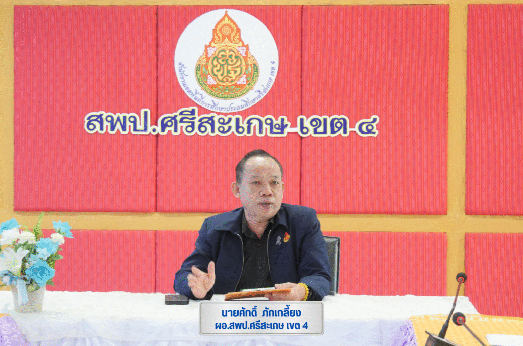 ในโอกาสนี้ นายศักดิ์ ภักเกลี้ยง ผอ.สพป.ศรีสะเกษ เขต 4 ได้กล่าวแสดงความยินดีพร้อมมอบนโยบายและแนวทางการปฏิบัติงานของผู้บริหารสถานศึกษาในการเป็น “ผู้นำทางวิชาการ” ณ ห้องประชุมมออีแดง สพป.ศรีสะเกษ เขต 4