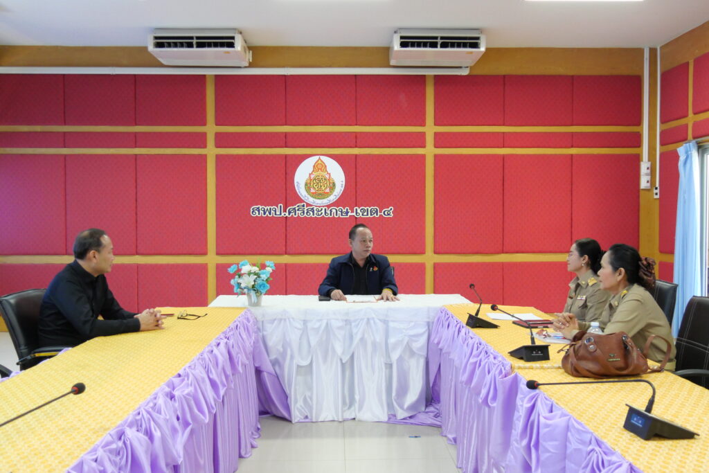 วันที่ 1 เมษายน 2569 นายศักดิ์ ภักเกลี้ยง ผู้อำนวยการสำนักงานเขตพื้นที่การศึกษาประถมศึกษาศรีสะเกษ เขต 4 พร้อมด้วย นายนิรัตน์ สายแก้ว ผู้อำนวยการกลุ่มบริหารงานบุคคล ให้การต้อนรับและแสดงความยินดีกับผู้อำนวยการสถานศึกษา ที่มารายงานตัวเพื่อบรรจุและแต่งตั้งให้ดำรงตำแหน่งผู้อำนวยการสถานศึกษา สังกัด สพฐ. ปี พ.ศ. 2568 ตามประกาศ อ.ก.ค.ศ.เขตพื้นที่การศึกษาประถมศึกษาศรีสะเกษ เขต 4 ประกาศ ณ วันที่ 11 สิงหาคม 2568 จำนวน 2 ราย ดังนี้