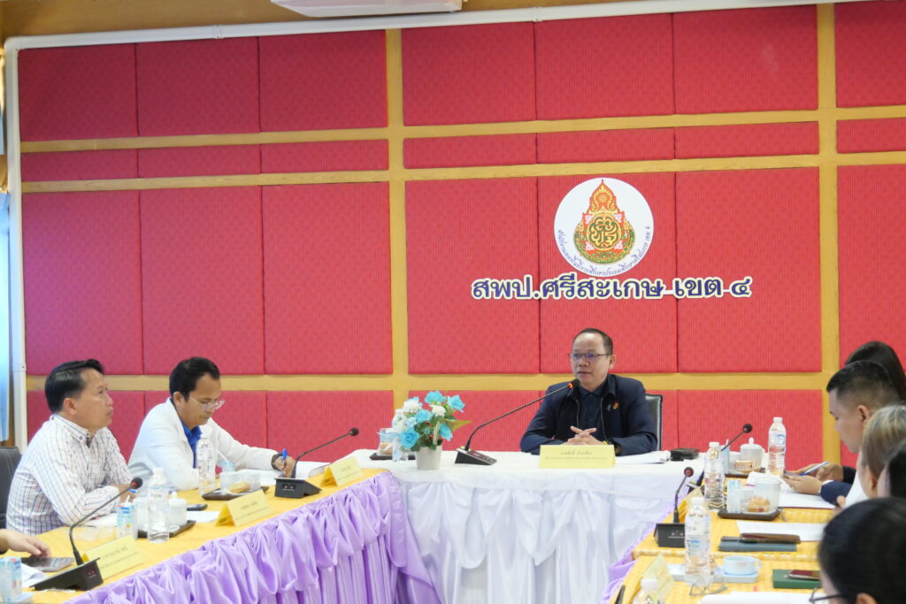 วันที่ 2 เมษายน 2569 นายศักดิ์ ภักเกลี้ยง ผู้อำนวยการสำนักงานเขตพื้นที่การศึกษาประถมศึกษาศรีสะเกษ เขต 4 เป็นประธานการประชุมผู้บริหารเขต ครั้งที่ 3/2569 เพื่อแจ้งข้อราชการสำคัญและติดตามการดำเนินงานขับเคลื่อนนโยบายการศึกษา โดยมี นายปรีชา จันทวี, นายยุทธนา พรทิพย์, นางสาวนารีรัตน์ เอกศิริ, นายไตรวิชญ์ เนียมมูล รองผู้อำนวยการสำนักงานเขตพื้นที่การศึกษาประถมศึกษาศรีสะเกษ เขต 4 พร้อมด้วยผู้อำนวยการกลุ่ม/หน่วย เข้าร่วมประชุม ณ ห้องประชุมมออีแดง อาคาร 1 ชั้น 2 สำนักงานเขตพื้นที่การศึกษาประถมศึกษาศรีสะเกษ เขต 4
