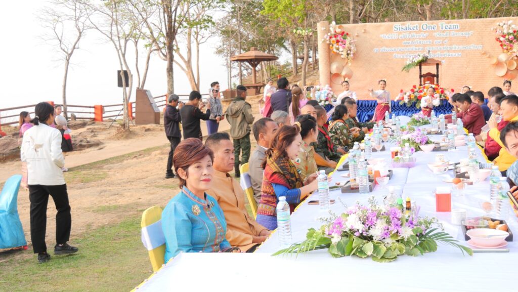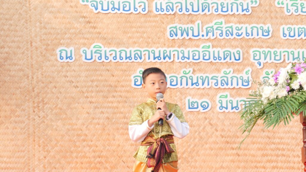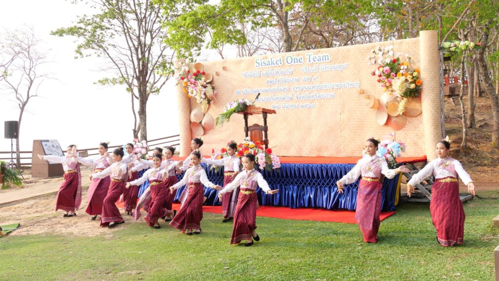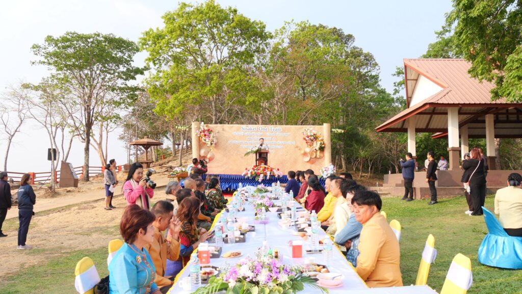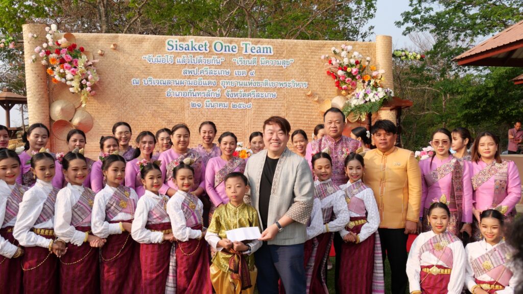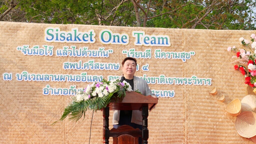 วันที่ 21 มีนาคม 2568 ที่บริเวณลานผามออีแดง อำเภอกันทรลักษ์ จังหวัดศรีสะเกษ นายสิริพงศ์ อังคสกุลเกียรติ ผู้ช่วยรัฐมนตรีประจำกระทรวงศึกษาธิการ เป็นประธานในพิธีเปิดงาน Sisaket One Team “จับมือไว้ แล้วไปด้วยกัน” “เรียนดี มีความสุข” โดยมี นางสาวชนมณัฐ รอดบุญธรรม รองผู้ว่าราชการจังหวัดศรีสะเกษ นายลิขิต เพ็งประสิทธิ์พงศ์ ผู้อำนวยการสำนักงานเขตพื้นที่การศึกษาประถมศึกษาศรีสะเกษเขต 4 ผู้บริหารสถานศึกษาใน สพป.ศรีสะเกษเขต 4 ผู้บริหารหน่วยงานการศึกษาและบุคลากรทางการศึกษาในพื้นที่จังหวัดศรีสะเกษ 200 คน ให้การต้อนรับ