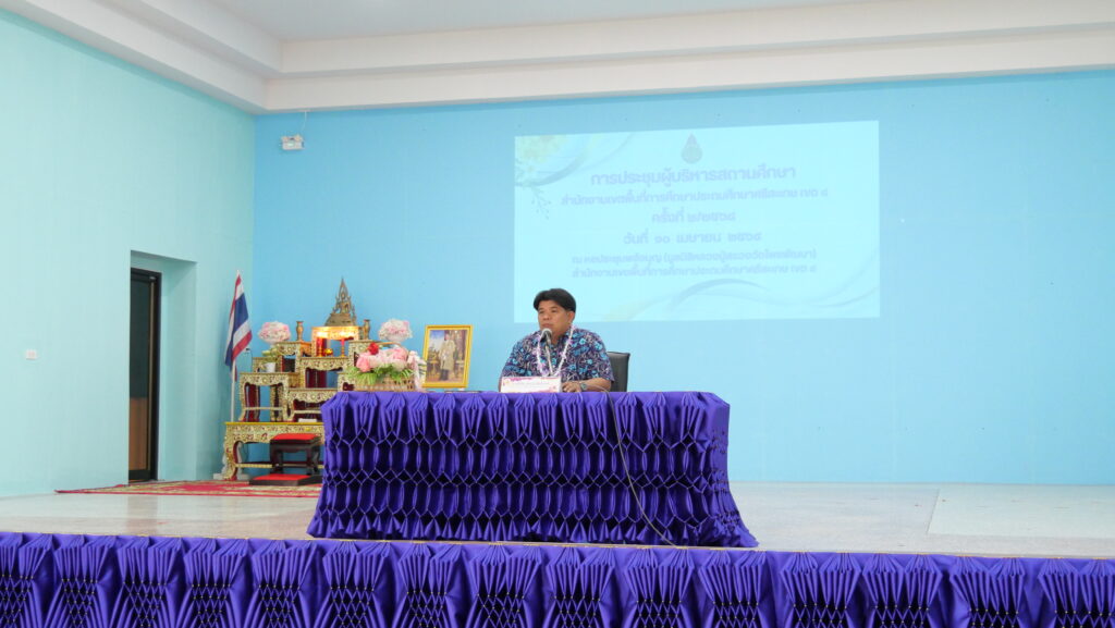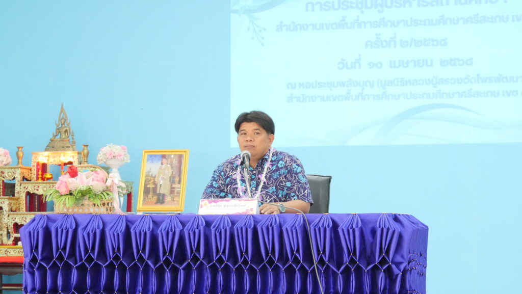 วันที่ 10 เมษายน 2568 นายลิขิต เพ็งประสิทธิพงศ์ ผู้อำนวยการสำนักงานเขตพื้นที่การศึกษาประถมศึกษาศรีสะเกษ เขต 4 เป็นประธานการประชุมผู้บริหารสถานศึกษา สำนักงานเขตพื้นที่การศึกษาประถมศึกษาศรีสะเกษ เขต 4 ครั้งที่ 2/2568 เพื่อแจ้งข้อราชการและสร้างการรับรู้นโยบาย “เรียนดี มีความสุข” สู่การปฏิบัติ พร้อมกับกล่าวชื่นชมผลงานและขอบคุณผู้บริหารสถานศึกษา ที่ช่วยขับเคลื่อนการดำเนินงานตามนโยบายในปีการศึกษา 2567 ที่ผ่านมา โดยมีผู้บริหารของสำนักงานเขตพื้นที่การศึกษาประถมศึกษาศรีสะเกษ เขต 4 ได้แก่ นายปรีชา จันทวี รอง ผอ.สพป.ศรีสะเกษ เขต 4 นายยุทธนา พรทิพย์ รอง ผอ.ศรีสะเกษ เขต 4 นางสาวนารีรัตน์ เอกศิริ รอง ผอ.ศรีสะเกษ เขต 4 รวมถึงผู้อำนวยการสถานศึกษาในสังกัด 209 โรงเรียน ผู้อำนวยการกลุ่ม ศึกษานิเทศก์ และบุคลากรของ สพป.ศก 4 เข้าร่วมประชุม ณ หอประชุมพลังบุญ (มูลนิธิหลวงปู่สรวงวัดไพรพัฒนา) สพป.ศรีสะเกษ เขต 4
